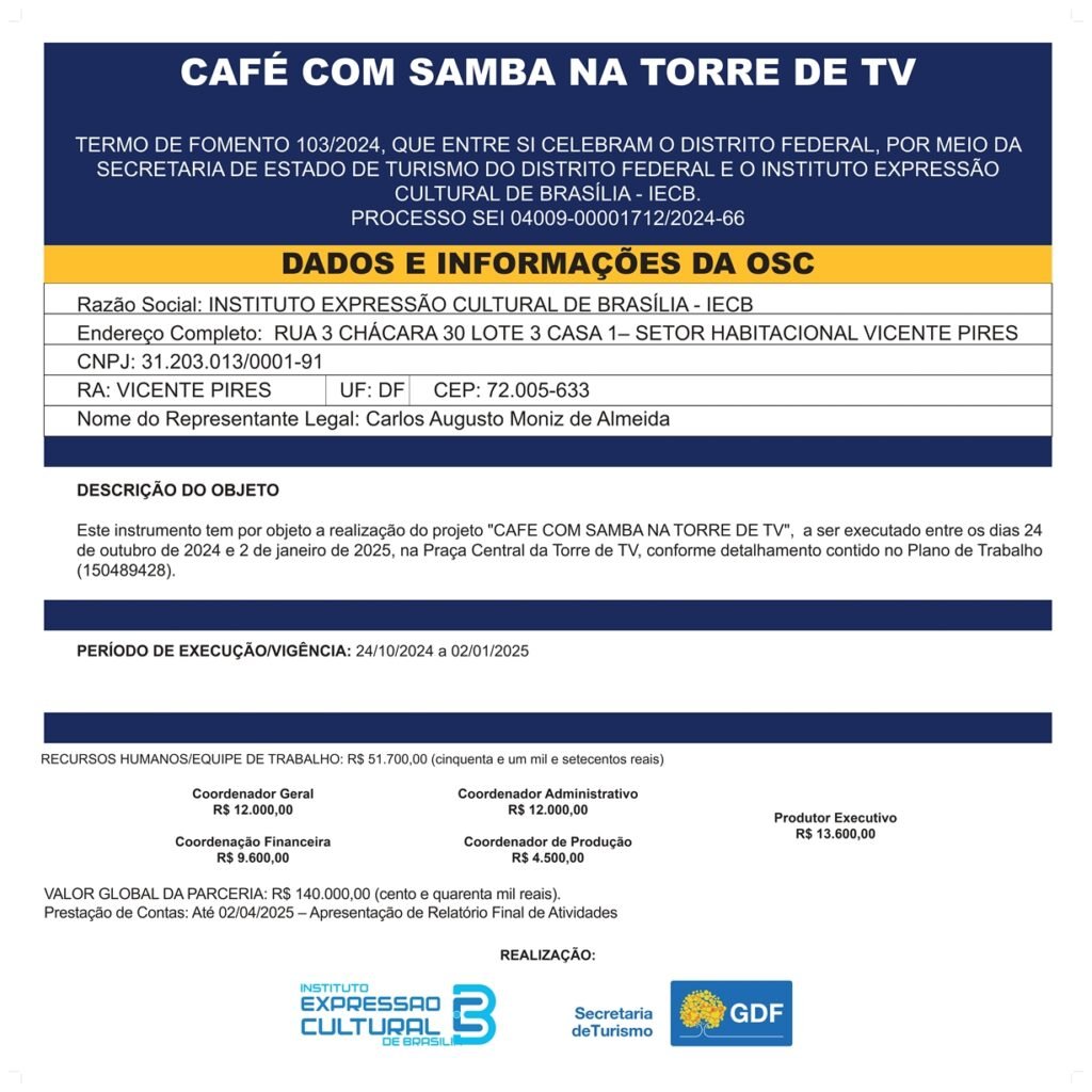 Termo de Fomento: https://expressaocultural.org.br/wp-content/uploads/2024/12/14-Cafe-com-Samba-na-Torre-de-TV-2.pdf