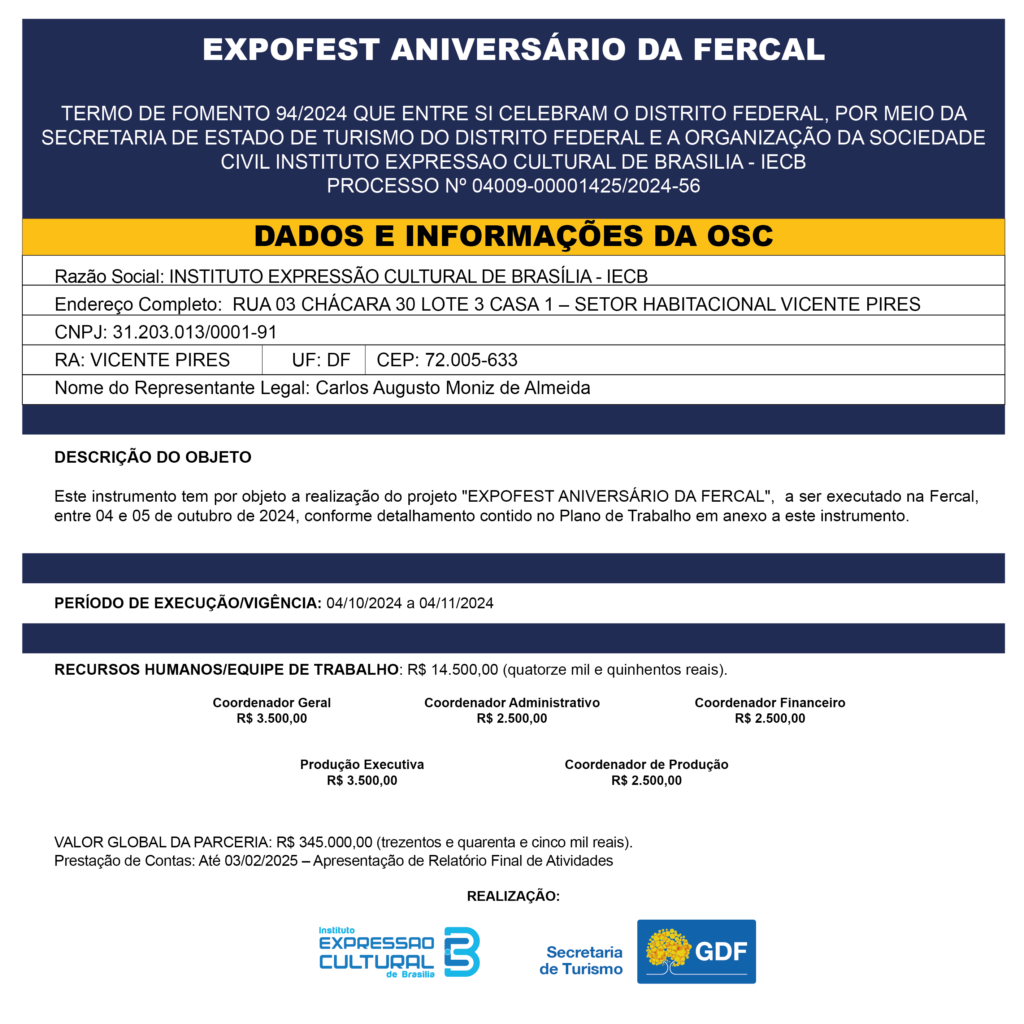 Termo de fonento: https://expressaocultural.org.br/wp-content/uploads/2024/12/EXPOFEST-FERCAL.pdf